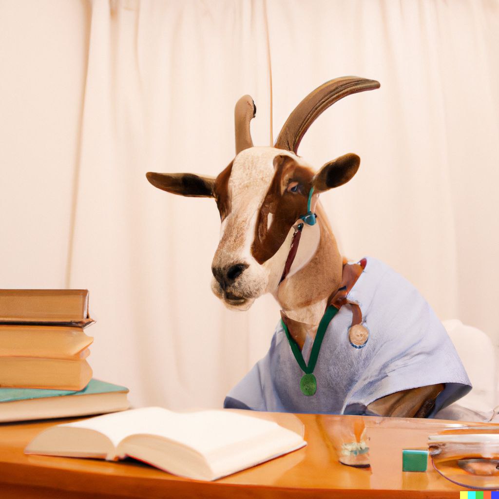The grand finale, where Alex emerges from a giant goat-shaped graduation cap, ready to conquer the world as a fully qualified nurse practitioner!